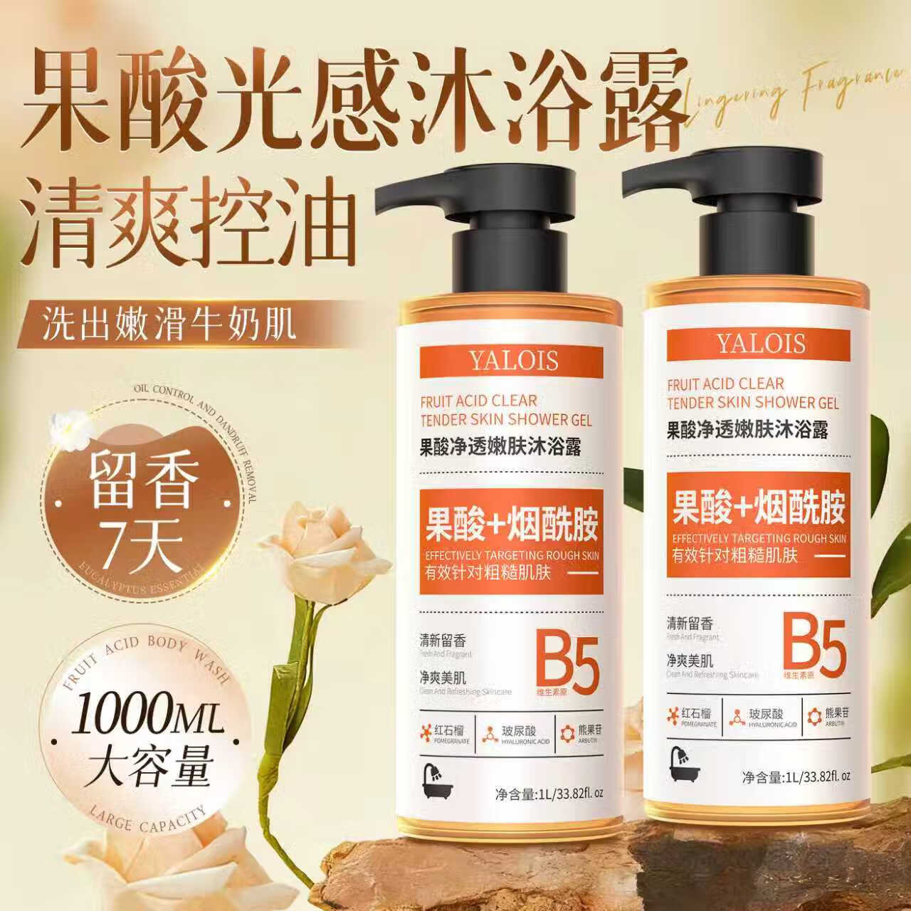 娅洛思果酸净透嫩肤沐浴露1L大容量烟酰胺持证除螨控油保湿补水持久留香