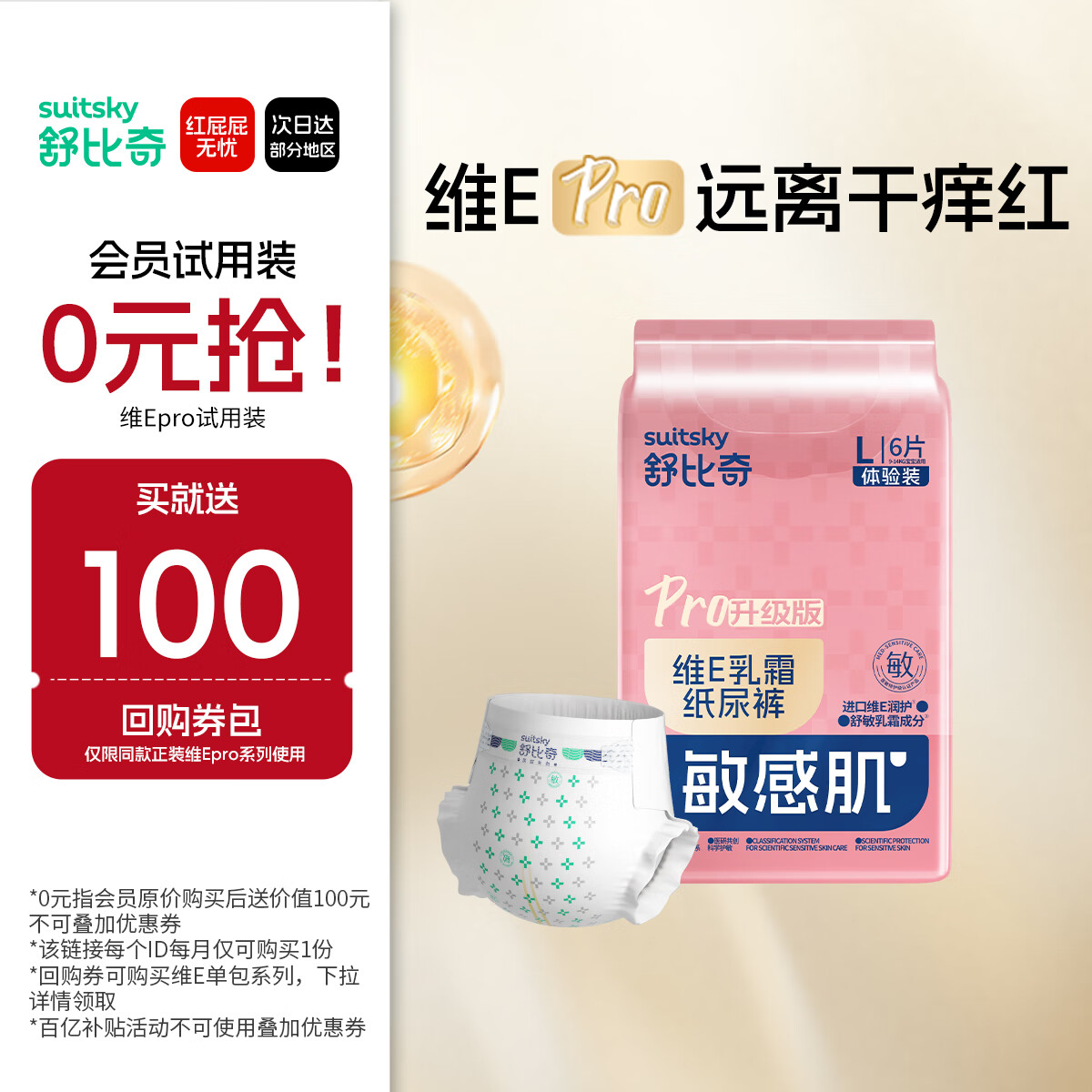 舒比奇(Suitsky)敏感肌维EPro乳霜纸尿裤体验装装L码6片