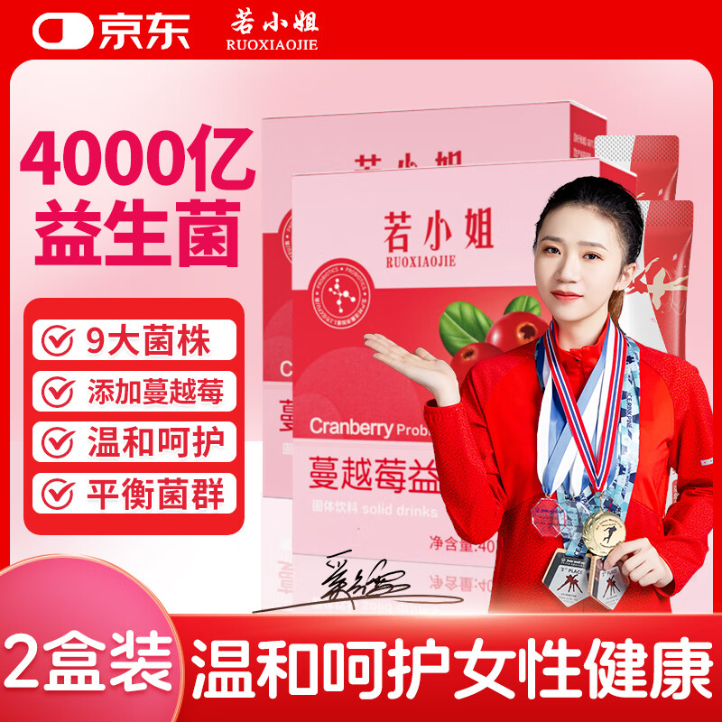 若小姐蔓越莓4000亿益生菌女性成人冻干粉益生元调理肠胃肠道虚弱2盒
