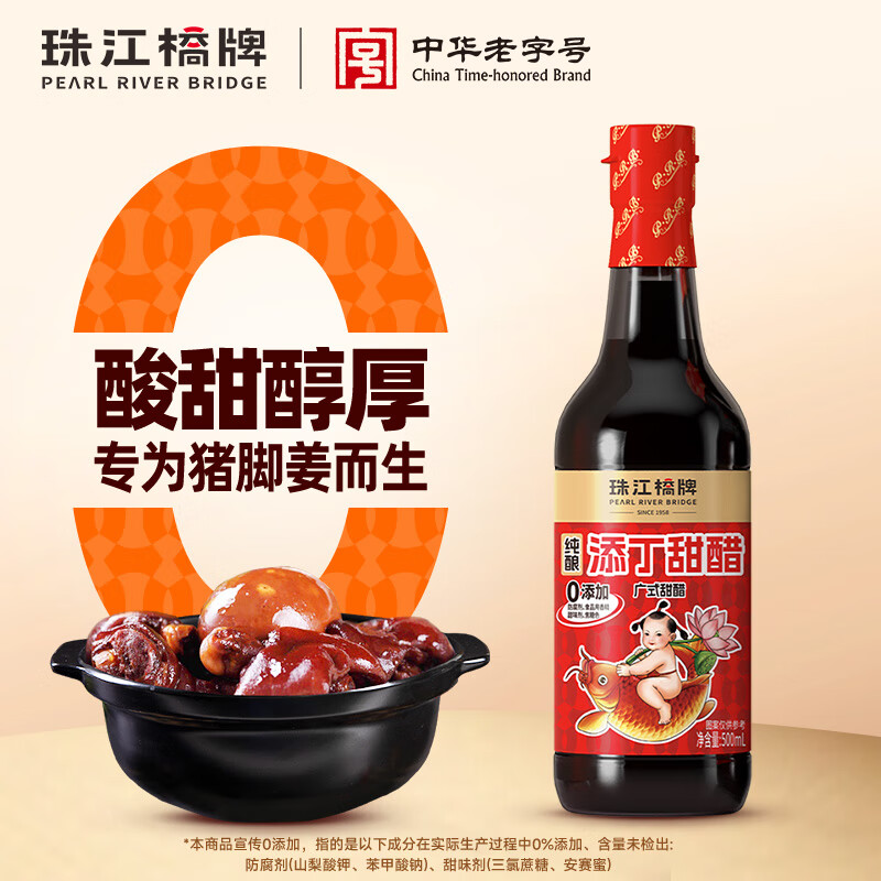 珠江桥牌纯酿添丁甜醋500ml 0添加防腐剂月子猪脚姜广式甜醋 中华老字号