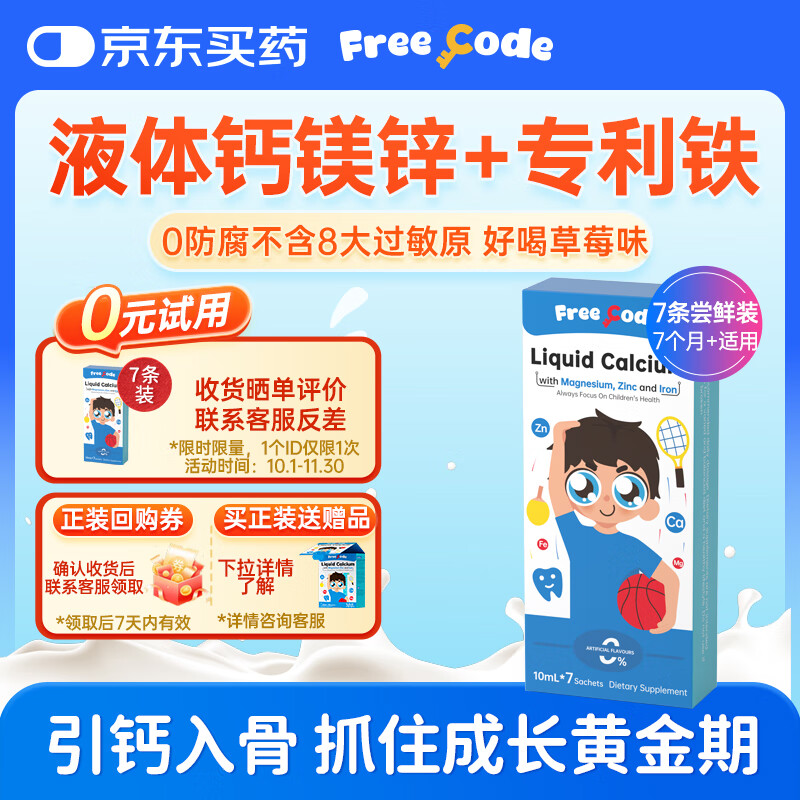 FreeCode红心钥匙液体钙镁锌试用装7条装