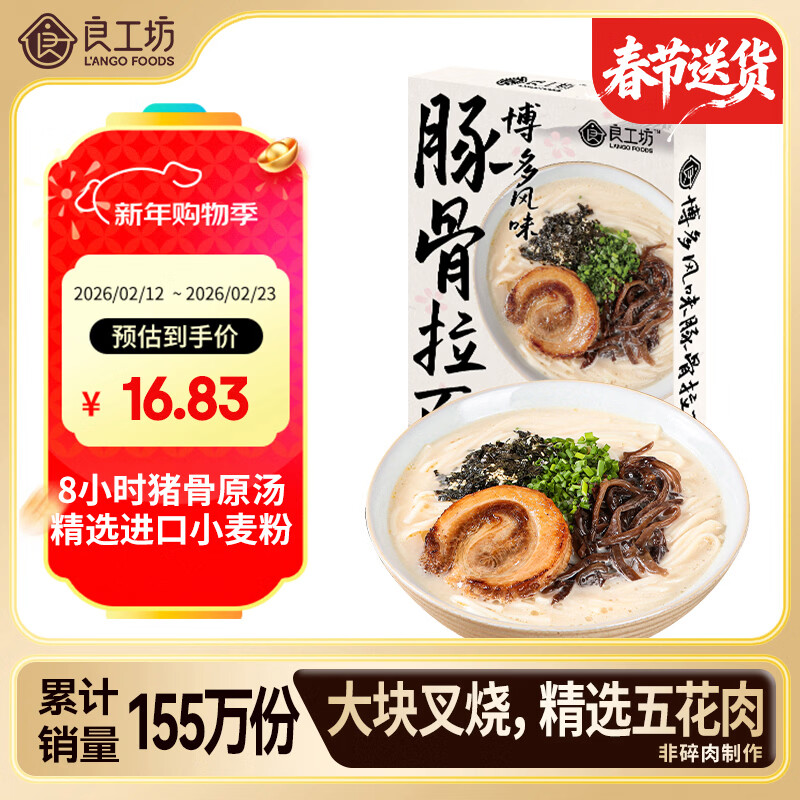 良工坊博多豚骨拉面185.5g日式拉面方便面速食面儿童早餐晚餐豚骨拉面