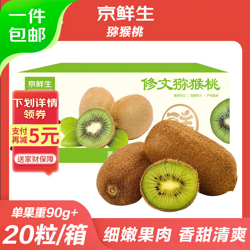 京鲜生 贵州修文猕猴桃绿心猕猴桃 20枚单果90g+ 生鲜水果 源头直发