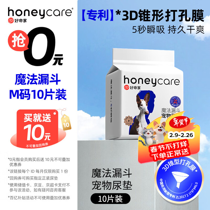 HONEYCARE好命家 好命天生宠物尿垫狗狗尿片魔法漏斗除味系列尿布10片装M码