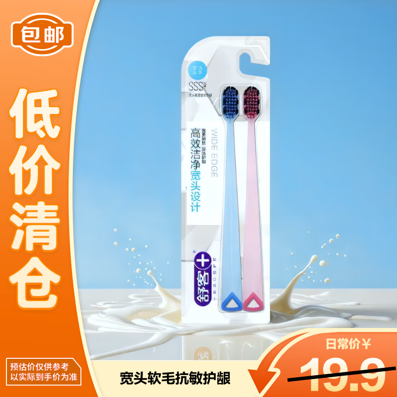 舒客宽头软毛成人牙刷双螺旋抗敏护龈2支 (包装颜色随机)【临期清仓】