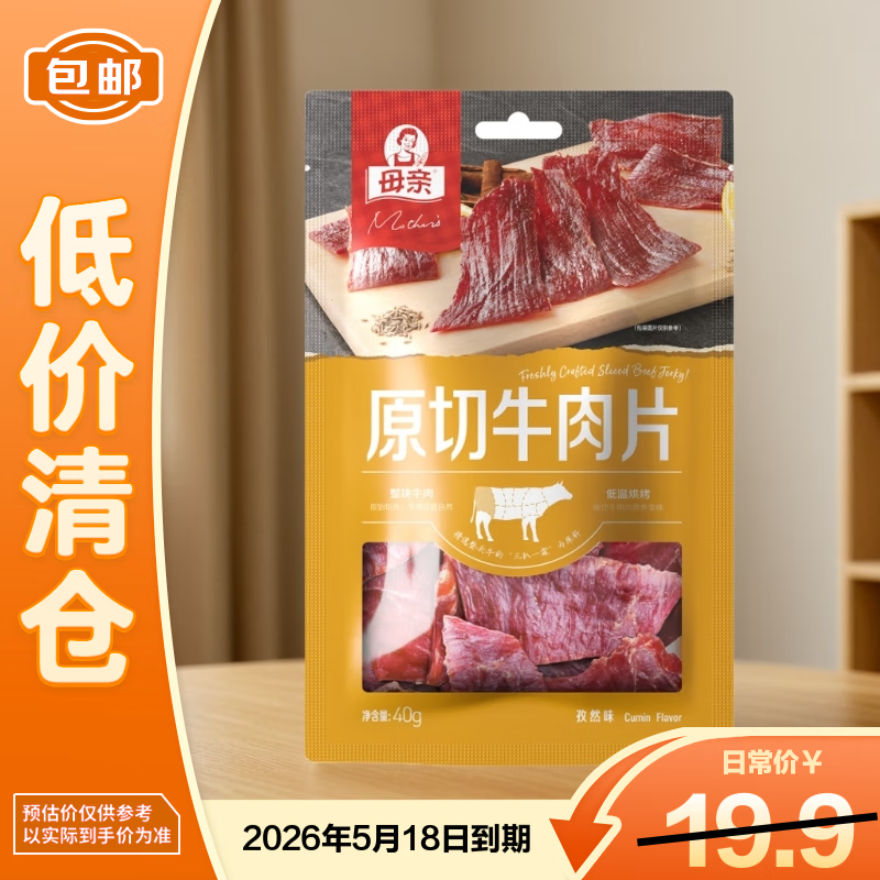 母亲原切牛肉片孜然味40g休闲零食肉干肉脯熟食小吃【临期清仓】