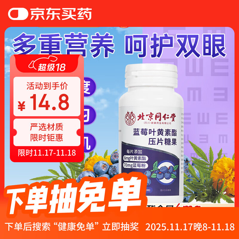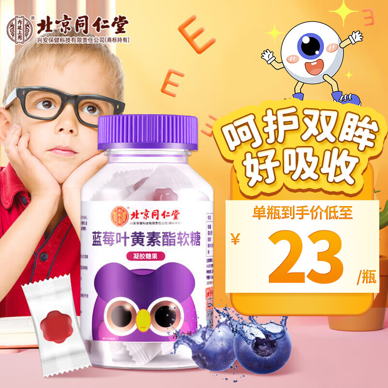 同仁堂 北京同仁堂蓝莓叶黄素酯维生素软糖儿童成人青少年零食60g