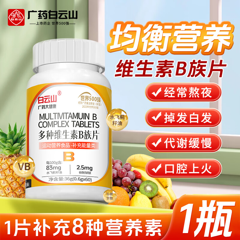 白云山维生素b族60片 b族维生素 复合维生素b12b2b6叶酸维生素男女多种