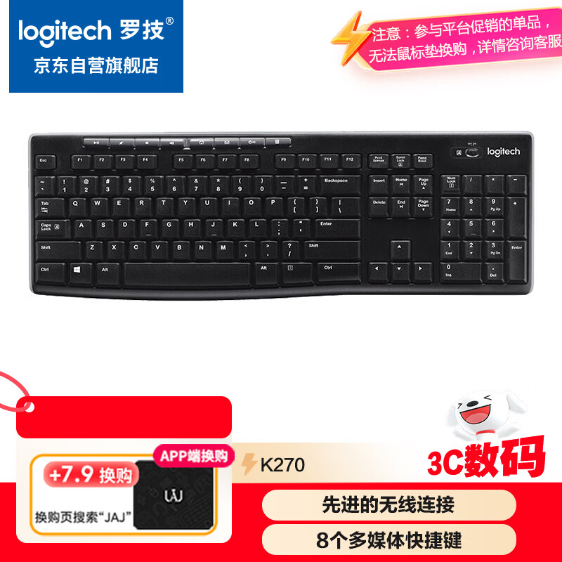 罗技(Logitech)K270 键盘 无线键盘 办公键盘 优联 笔记本键盘 全尺寸 黑色