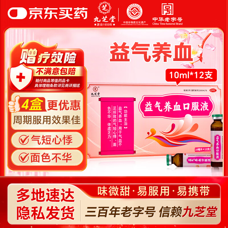 九芝堂 益气养血口服液 10ml*12支 补气血女补气养血 气短心悸 面色不华 体虚乏力 京东自营