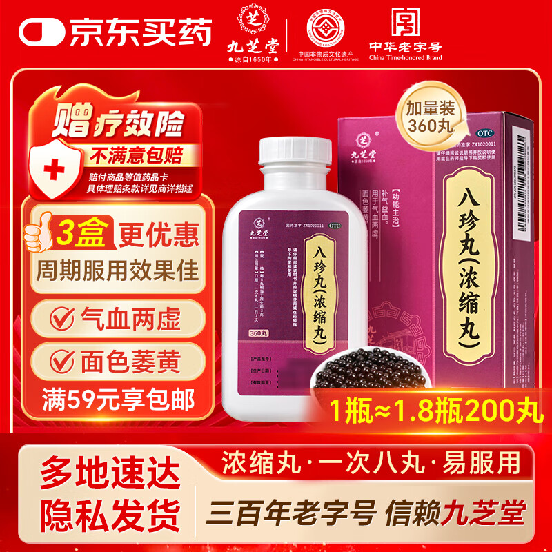 九芝堂 八珍丸 浓缩丸 360丸/盒补气益血 气血两虚 面色萎黄 四肢乏力 补气血女补气养血 京东自营