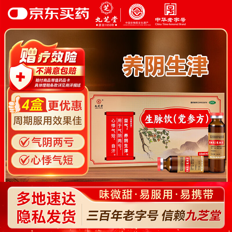 九芝堂 生脉饮(党参方)10ml*8支 益气养阴生津 气阴两亏心悸气短自汗 京东自营