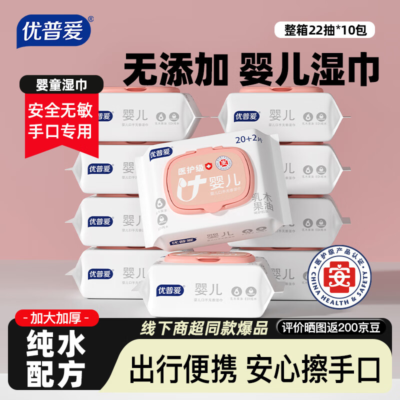 优普爱婴儿湿巾22片*10包 医护级乳木果油配方 滋润呵护娇嫩肌便携湿巾
