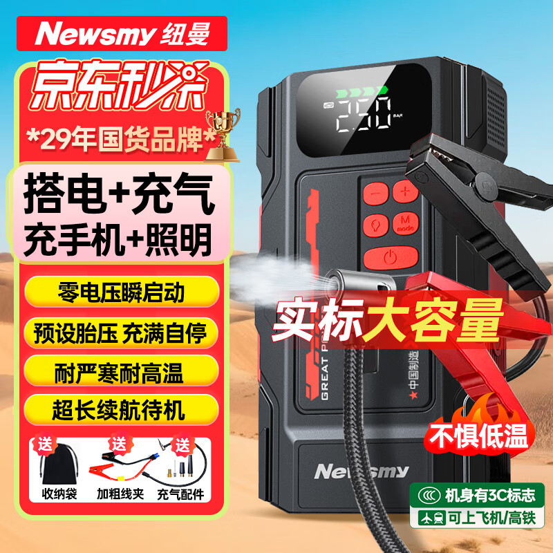 纽曼(Newsmy)【3C认证】F3汽车应急启动电源搭电宝充气泵一体机车载电瓶摩托车强启打气泵户外移动电源打火神器