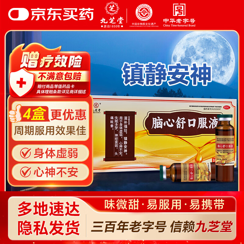 九芝堂 脑心舒口服液 10ml*9支滋补强壮 镇静安神 心神不安 失眠多梦 头痛眩晕 京东自营