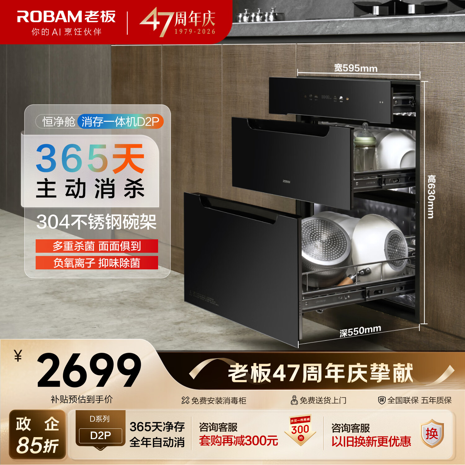 老板【顶配大容量】D2P消毒碗柜嵌入式150L不锈钢母婴奶瓶家用碗柜收纳烘干消毒一体三门三抽政府补贴