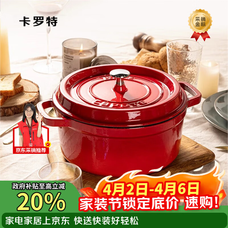 卡罗特珐琅锅铸铁锅家用送礼乔迁礼物炖锅炖盅砂锅汤锅不粘锅煮锅 24cm