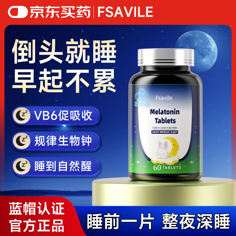 FSAVILE美国进口品牌褪黑素VB6改善睡眠失眠安神助眠无依赖性1瓶60粒