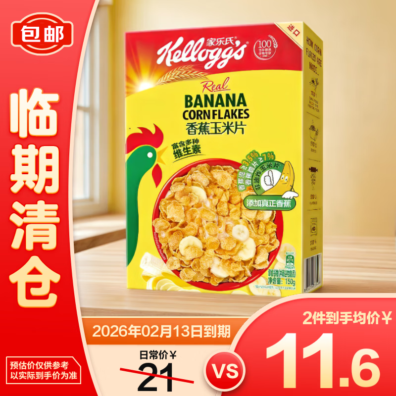 Kellogg进口麦片早餐儿童营养即食牛奶伴侣 香蕉玉米片150g【临期清仓】