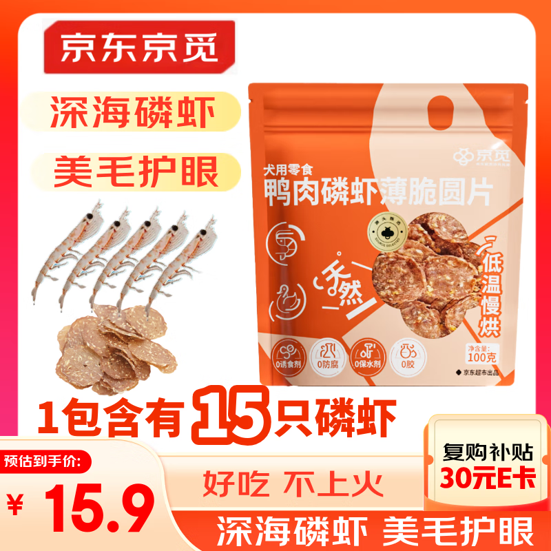 京觅磷虾鸭肉片干 磨牙棒鸭胸肉狗狗零食训练奖励 原料透明100g