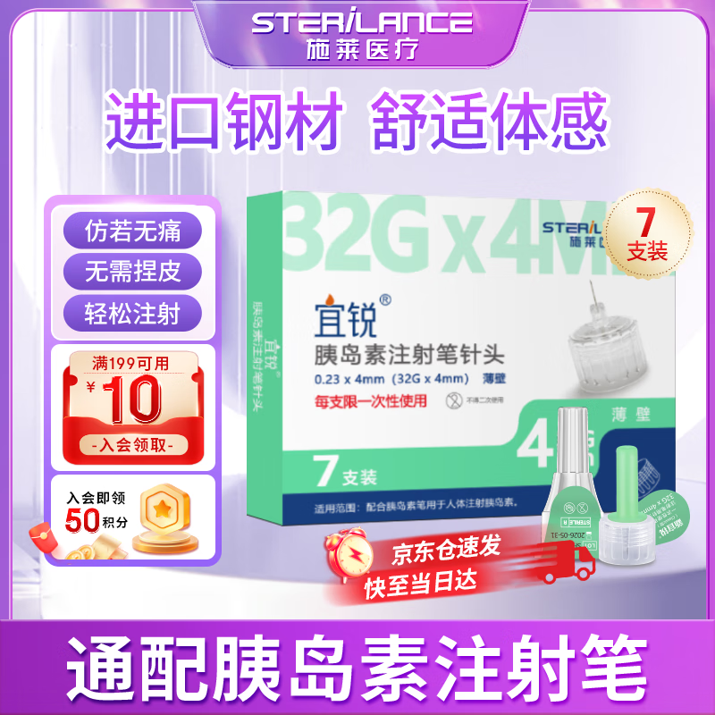 沙力施莱宜锐胰岛素针头注射笔一次性用针低痛通用薄壁32G*4mm1盒 7支