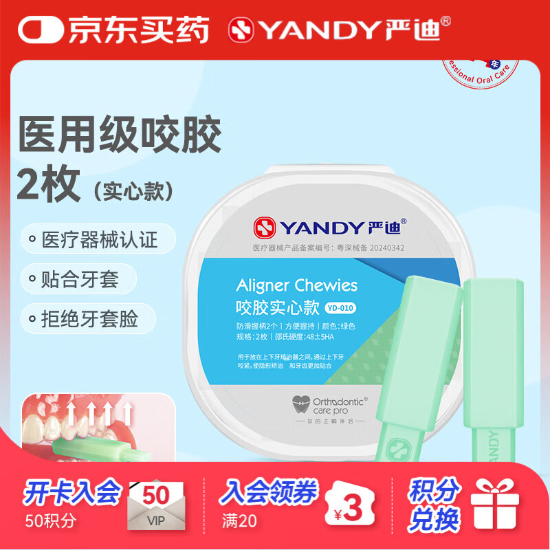 严迪医用级正畸咬胶 实心款绿色2枚 牙齿矫正期牙胶棒隐形牙套贴合