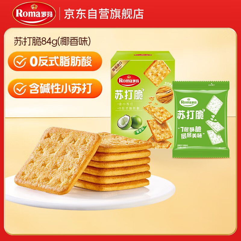ROMA罗玛苏打脆发酵饼干椰香味84g 休闲零食早餐办公室下午茶
