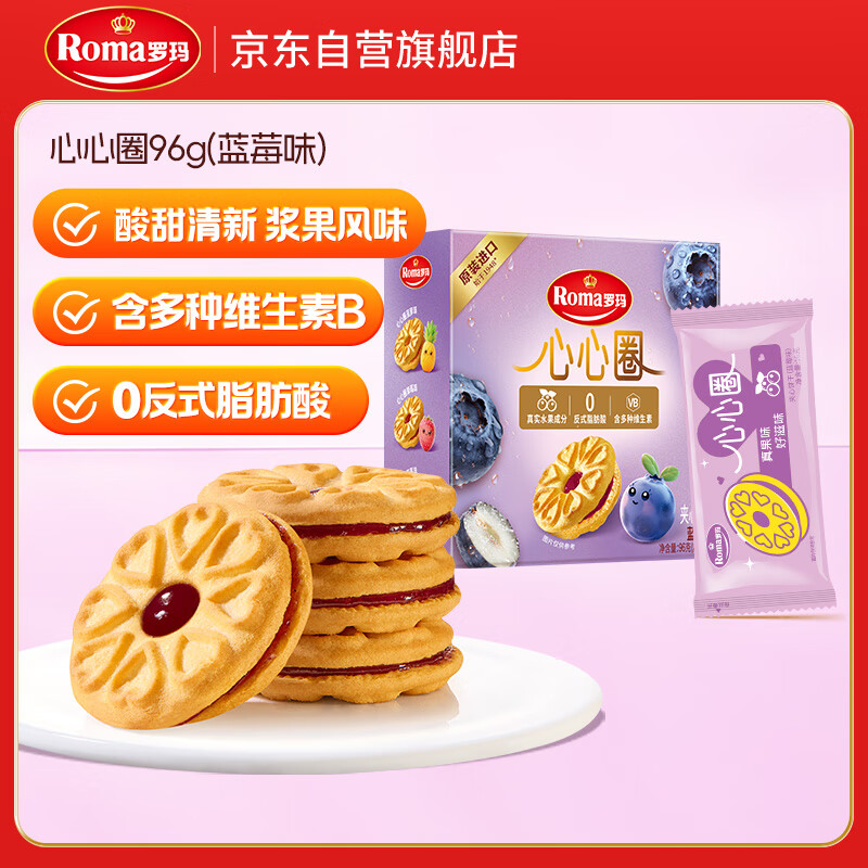 ROMA罗玛心心圈夹心饼干蓝莓味96g 休闲零食早餐办公室下午茶
