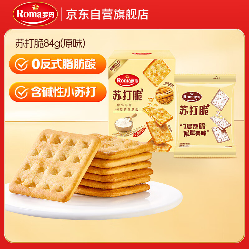 ROMA罗玛苏打脆发酵饼干原味84g 休闲零食早餐办公室下午茶