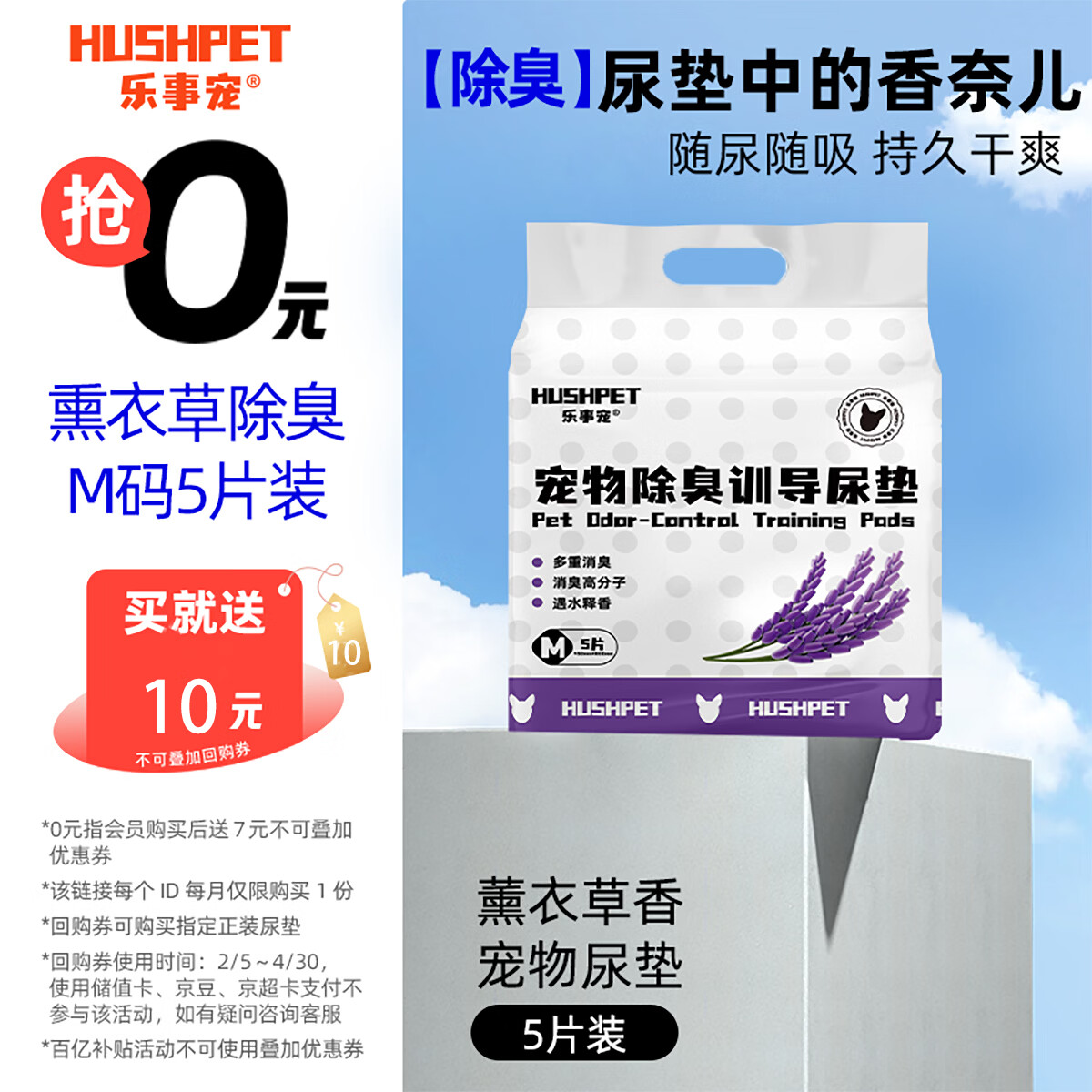 乐事宠薰衣草香宠物尿垫狗狗隔尿垫背贴狗狗尿垫除臭吸水垫京东自营M码