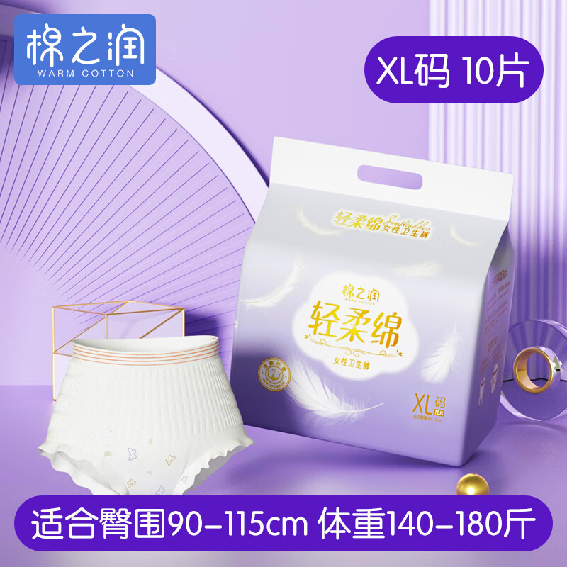棉之润安心裤安睡裤拉拉裤夜用裤型卫生巾XL码10片【自有工厂品牌直供】