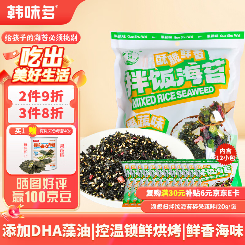 海媳妇拌饭海苔碎果蔬味120g休闲零食儿童烤紫菜即食独立小包装