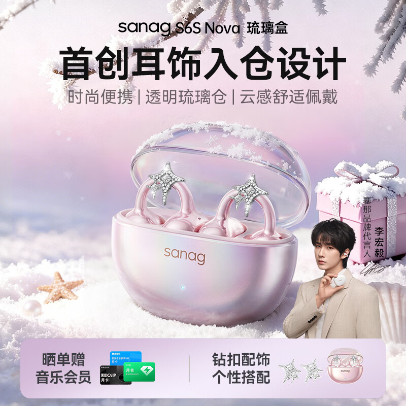 SANAG塞那 S6SNova 耳夹式蓝牙耳机 骨传导概念运动跑步挂耳式 生日礼物奖品送礼 人鱼姬
