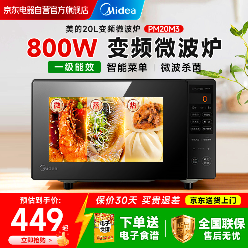 美的(Midea)家用变频微波炉PM20M3|800W大火力|智能菜单|一级能效