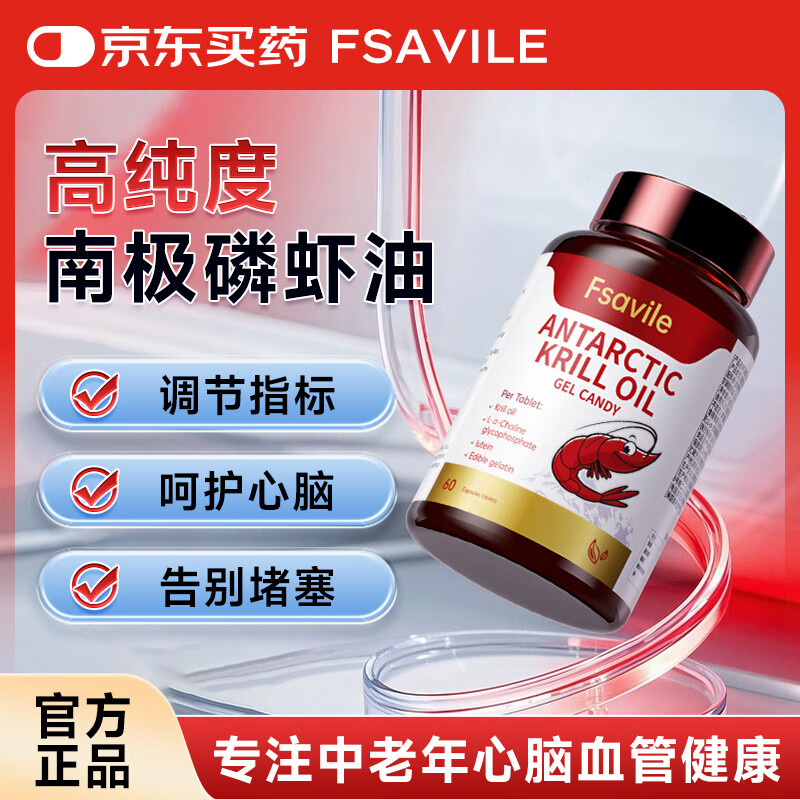 FSAVILE进口品牌南极磷虾油深海鱼油omega-3中老年人成人儿童高纯度1瓶