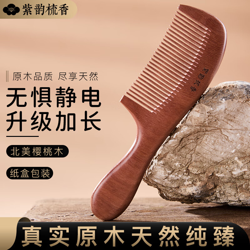 紫韵梳香密齿整料樱桃木梳子女士男士三八妇女节母亲节礼物送妈妈M-49