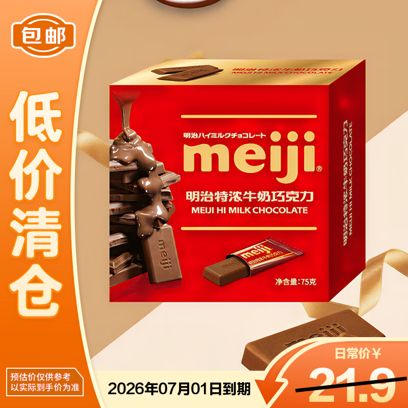 明治特浓牛奶巧克力 75g盒装休闲零食 生日礼物 送女友【临期清仓】