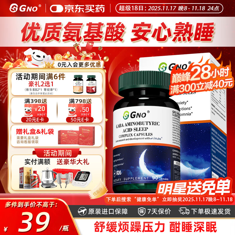 GNO氨基丁酸gaba失眠睡眠片褪黑素维生素b6改善睡眠失眠焦虑 90粒/瓶