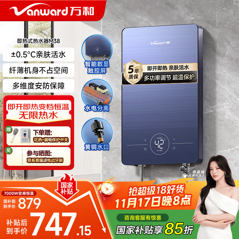 万和(Vanward)即热式电热水器即开即热家用速热家电电热水加热器淋浴器洗澡机过水热热水器